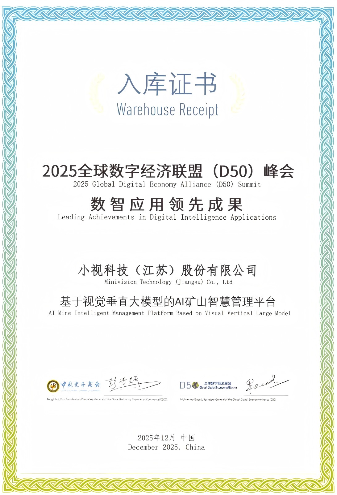在全场瞩目中,“2025数智应用领先成果库”颁奖仪式正式拉开帷幕。小视科技基于视觉垂直大模型的AI矿山智慧管理平台从众多成果中脱颖而出,成功入选。该平台依托自主研发的矿山视觉大模型,深度融合计算机视觉与多模态AI技术,实现了对矿山上百种复杂场景的智能感知与实时风险预警,为矿山安全生产与运营管理提供了可靠的技术保障,具有显著的行业示范价值。